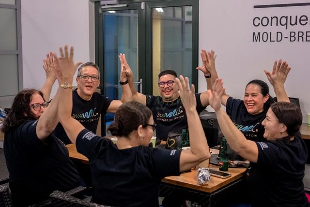 E celebracion a cuminsa cu un “happy hour”, bon musica y reparticion di un t-shirt conmemorativo. Esaki a set e tono pa un celebracion di un luna completo di nos empleadonan na Aruba Bank.