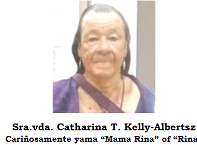 Aurora/Royal/ Pray Funeral Home ta anuncia fayecimento di Sra.vda. Catharina T. Kelly-Albertsz Cariñosamente yama “Mama Rina” of “Rina”