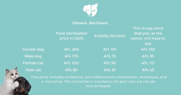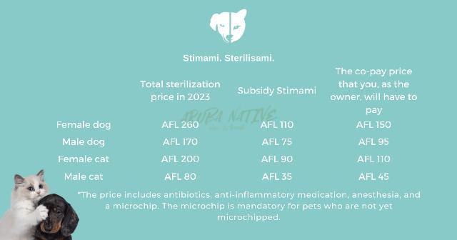 Prijs total di sterilisacion na 2024 Subsidio di Stimami E co-pay cu abo, como e doño, lo mester paga