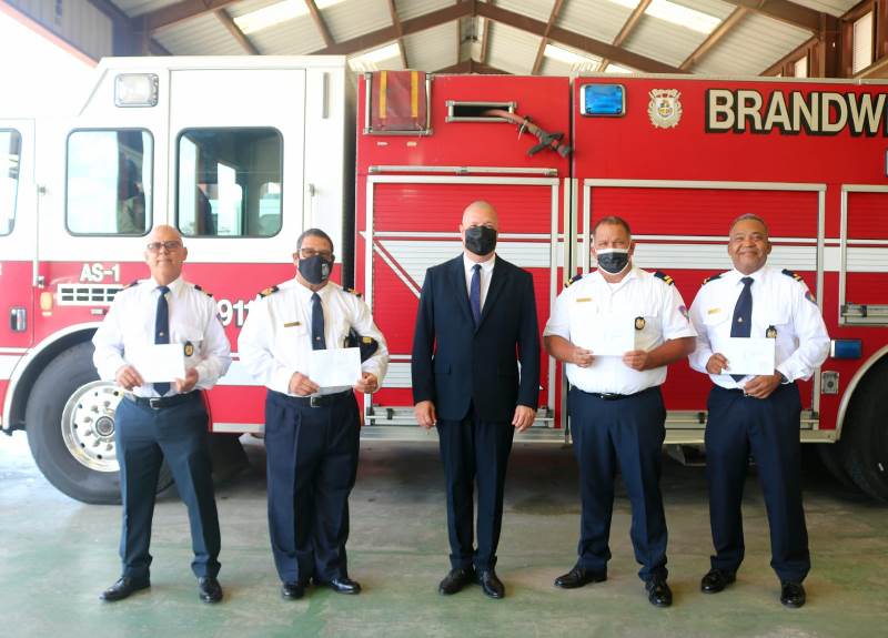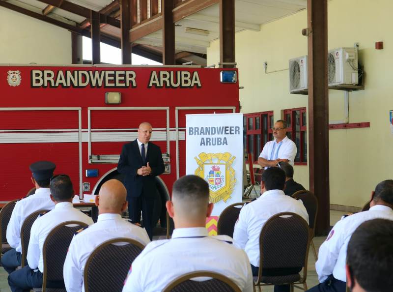 Durante su discurso e mandatario a recorda e hecho cu e siman aki a firma pa cumpra un brandspuit nobo, a haci entrega recientemente di ekipo sofistica di oxigeno y camara Infrared, y cu a encamina e proceso hunto cu DOW pa pronto lo por bay cuminsa renoba e post di Brandweer na San Nicolaas. Tambe a recorda e intencion pa traha un post nobo pa districto di Santa Cruz. E mandatario a gradici e bomberonan pa e pasenshi, debi cu pandemia a percura pa basta retraso. A reconoce e Management Team cu a percura pa a formalisa y keda cla y/of encamina varios proyectonan cu tabata pendiente.