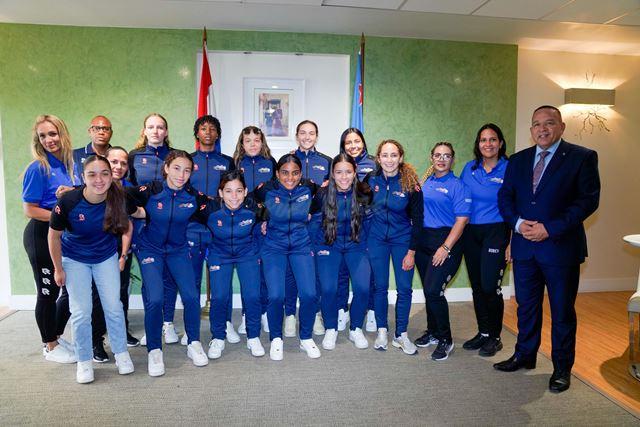 ORANJESTAD: Diamars merdia, Minister Endy Croes a ricibi nos Seleccion Femenino di Futbol den e VIP room di Aeropuerto Internacional Reina Beatrix. Manera ta conoci, Seleccion di Aruba a competi den e prome Caribbean Queen Tournament cu a tuma luga na nos hermana isla Curaçao, unda cu e ekipo di Aruba a conkista e prome luga di e torneo. Nos Seleccion Femenino a hunga cuater wega di cual a gana 2 wega, empata 1 y cay venci 1 biaha. Ademas di esaki, Soraya Verhoeve y Bonny Lammers, ambos hungadonan di e Seleccion di Ajax y Seleccion di Hulanda a debuta cu Seleccion di Aruba. Ta di remarca cu Seleccion di Aruba cu actualmente ta rank 185 di FIFA a gana Trinidad & Tobago cu ta number 77 di FIFA, alabes top 10 den Caribe. Esaki sigur ta demostra e desaroyo positivo di futbol di Aruba. Pa conclui, e mandatario di Deporte ta felicita AVB y nos Seleccion Femenino cu e logro aki, alabes ta gradici staf y tur cu a haci esaki posibel. Cu deseo, disciplina, dedicacion y determacion boso a logra. Aruba ta orguyoso di boso. Por ultimo, Minister Endy Croes ta extende un invitacion pa Pueblo di Aruba pa apoya nos Seleccion Masculino di Futbol diasabra awo, cuminsando 8 or di anochi den Compleho Deportivo Guillermo Prospero Trinidad.