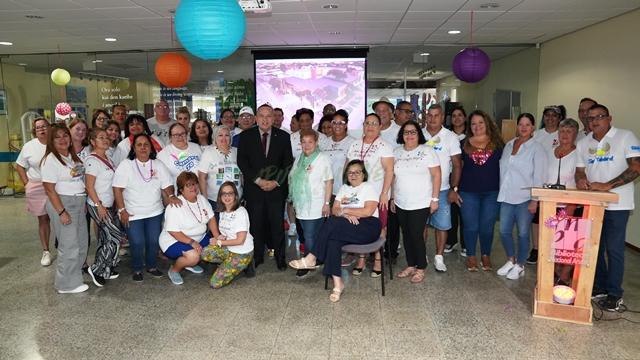 ORANJESTAD: Minister di Enseñansa y Deporte Endy Croes a reuni cu directora di Biblioteca Nacional Aruba (BNA) Sra. Astrid Britten. Sra. Britten a indica cu Biblioteca Nacional Aruba ta preparando pa celebracion di ‘75 aña di trabou di biblioteca na Aruba’. Ta “revamp” e logo di Biblioteca Nacional Aruba y lo continua pa pone mas poema riba e glasnan na e edificio na George Madurostraat. A cuminsa cu poeta clasico y awo ta sigui cu poeta contemporaneo. Di e forma aki ta reconoce e trabou di nos poeta- y escritornan. Lo bin tambe cu un publicacion di e coleccion di arte di Biblioteca Nacional Aruba. Produccion ta den man di un “curator”. Apertura oficial di e prome Sala di Lectura Publico y Biblioteca di Gobierno a tuma luga dia 20 di augustus 1949. Dia 31 di augustus 1980 Su Mahestad La Reina Beatrix, den presencia di entre otro Diputado di Biblioteca, Sr. Nelson Oduber ta devela un plakkaat na ocasion di ponemnto di prome piedra di e edificio nobo na George Madurostraat. Padvindernan a hisa bandera durante e inauguracion di e edifico di Biblioteca Publico na George Madurostraat na aña 1982. Dia 3 di maart 1986 Su Excelencia Gobernador di Aruba, Sr. Felipe B. Tromp a batisa Biblioteca Publico Aruba solamente cu e nomber nobo Biblioteca Nacional Aruba y dia 20 di augustus 2024 lo para keto na ‘75 di aña trabou di Biblioteca na Aruba’.
