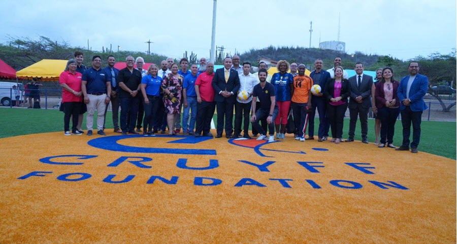 Despues di e video cu e mensahe di motivacion di Denzel Dumfries a devela oficial e cancha Cruyff Court Denzel Dumfries. E acto di develacion a wordo haci pa Minister Endy Croes, sr. Simon van Rooijen, Prome Minister Evelyn Wever – Croes, IBISA y Jonathan Ruiz.