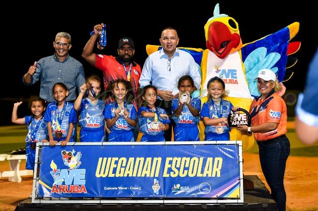Minister Endy Croes ta gradici IBISA, Ministerio di Enseñansa y Deporte, FFD, FLPD, SSA y Gabinete Wever – Croes II cu a inverti y haci Weganan Escolar 2023 posibel. Tambe, mandatario di Enseñansa y Deporte ta gradici directivanan di scol, cabesante y docentenan di gym pa sostene e proyecto. Danki na tur e alumnonan cu a participa y engrandece Weganan Escolar 2023. Danki na e mayornan cu ta apoya y sostene nan yiu den nan deporte faborito. Deporte ta trece union!