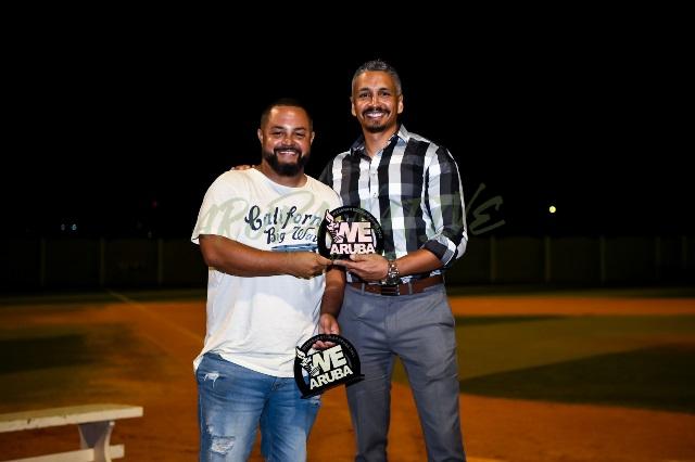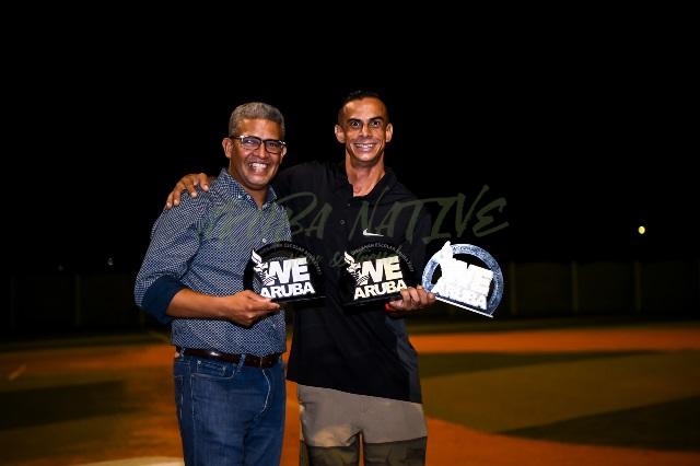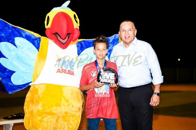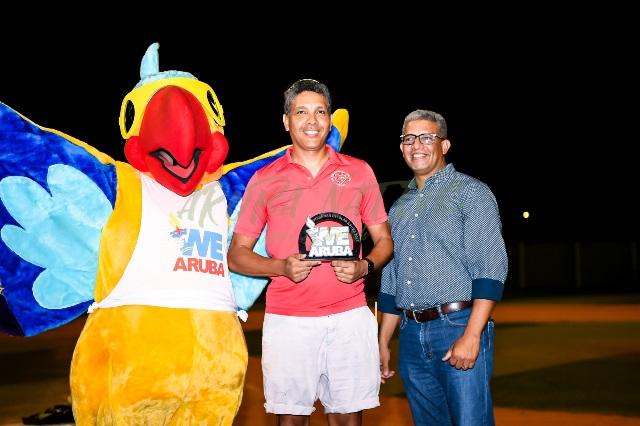 Minister Endy Croes, Vice Presidente di Parlamento Raymond Kamperveen y Parlamentario Alvin Molina a haci entrega di e medaya y trofeo na e ganadonan.