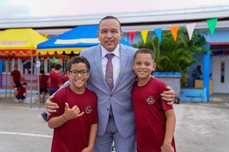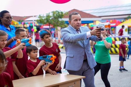 ORANJESTAD: Dia 20 di november ultimo, en conexion cu Dia Internacional di Derecho di Mucha y 15 aña di existencia di Scol Primario Kudawecha, Minister di Enseñansa Endy Croes a bishita nan Feria di Diversion. Na yegada cabesante di e scol Sra. Xiomara Berkel a ricibi mandatario di enseñansa y a dun’e un recorido den e Feria di Diversion. Tambe, Minister Endy Croes tabatin e oportunidad pa participa den algun wega. Presente na e mainta special aki, tabata Sra. Morela Dirks y Sra. Marylou Maduro di DPS. Manera ta conoci, Scol Primario Kudawecha ta resorta bou di Dienst Publieke Scholen (DPS) y ta conta cu alrededor di 400 alumno. E scol a organisa un mainta ameno unda cu e alumnonan por a disfruta di diferente wega popular y actividad. Sigur e alumonan a gosa di e mainta dedica na nan, tabata reina un ambiente y alegria. Cabesante di e scol Sra. Xiomara Berkel a expresa cu tabata un mainta hopi special pa e scol unda cu nan a celebra Dia Internacional di Derecho di Mucha y 15 aniversario cu e scol a cumpli na luna di augustus ultimo. Pa conclui, Minister Endy Croes ta gradici pa e invitacion, alabes ta felicita docente- y alumnonan cu diescinco (15) aniversario di e scol. Mandatario di Enseñansa ta gradici e cabesante Sra. Berkel y e docentenan cu durante 15 aña largo a educa nos yiunan.