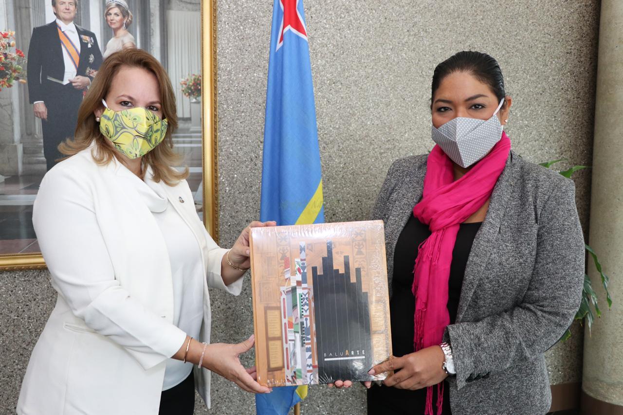 ORANJESTAD – Diamars mainta Minister Maduro a entrega e buki BaluArte na Conseho di Minister di Aruba. BaluArte ta un buki cu ta documenta historia di persona y organisacion cu a duna un contribucion significante na desaroyo di cultura den e ultimo 65 aña na Aruba.