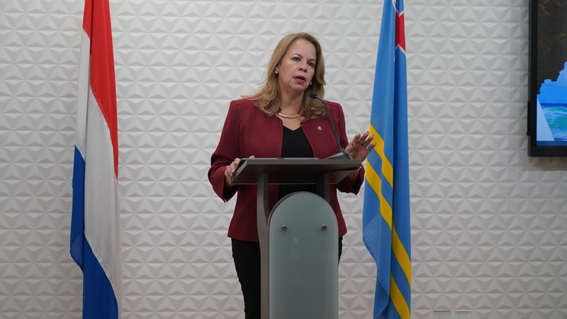 Diahuebs mainta durante conferencia di prensa di Gobierno di Aruba, Prome Minister Evelyn Wever-Croes a duna un update di Covid-19.