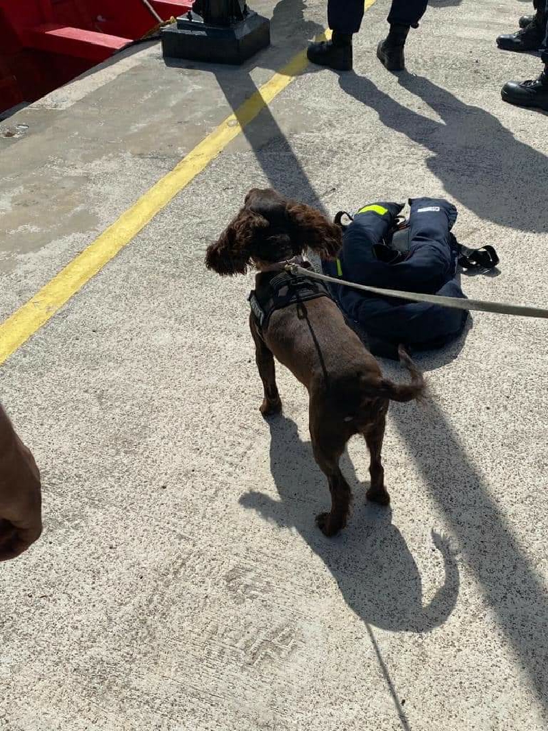 Durante e control conhunto cu cacho di BOT K-9 a bin encontra 2 pakete. Despues di investigación a resulta cu e paketenan tabata contene droga. E capitán y tripulante a wordo detení pa transportashon di droga y a wordo pasa over pa departamento di UGC/KPA pa mas investigación .