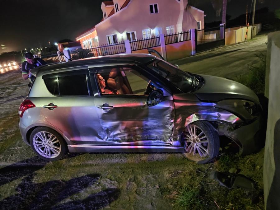 Chauffeur di e Swift a keda pega den e auto, debi cu e auto ta RHD e porta a pega y a resulta herida.