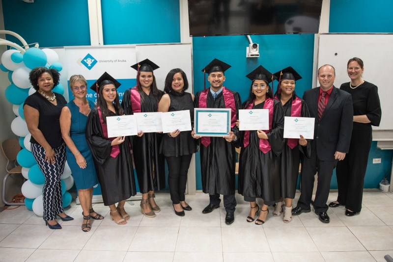 ORANJESTAD – Dia 20 di Juli 2021, 7 graduado a ricibi nan diploma ‘tweedegraads’ di docente di Matematica na e facultad di Arte y Ciencia (Faculty of Arts and Science (FAS)) na Universidad di Aruba (UA). E 7 graduadonan ta: Jonathan Bocanegra, Mary-Ann Pereira, Shabala Cabral de Andrada, Nayenza Boezem, Leandra Dijkhoff, Gianina Medina y Nardini Solognier. E programa, cu a cuminsa na 2013, tin actualmente 32 graduado.